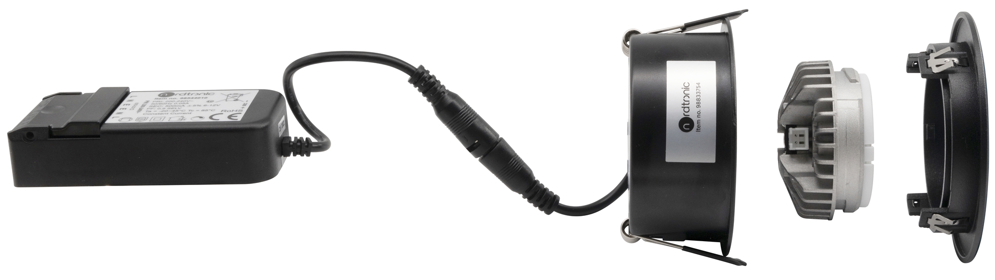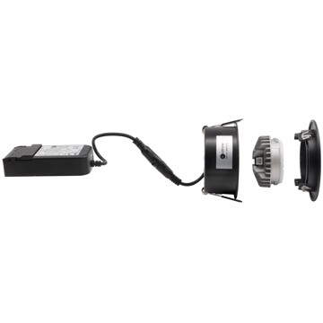 • The downlight can be driven either by a stand-alone driver or by Nordtronic's 25W driver (25W or up to 8 pcs. Ø55 mm downlight)