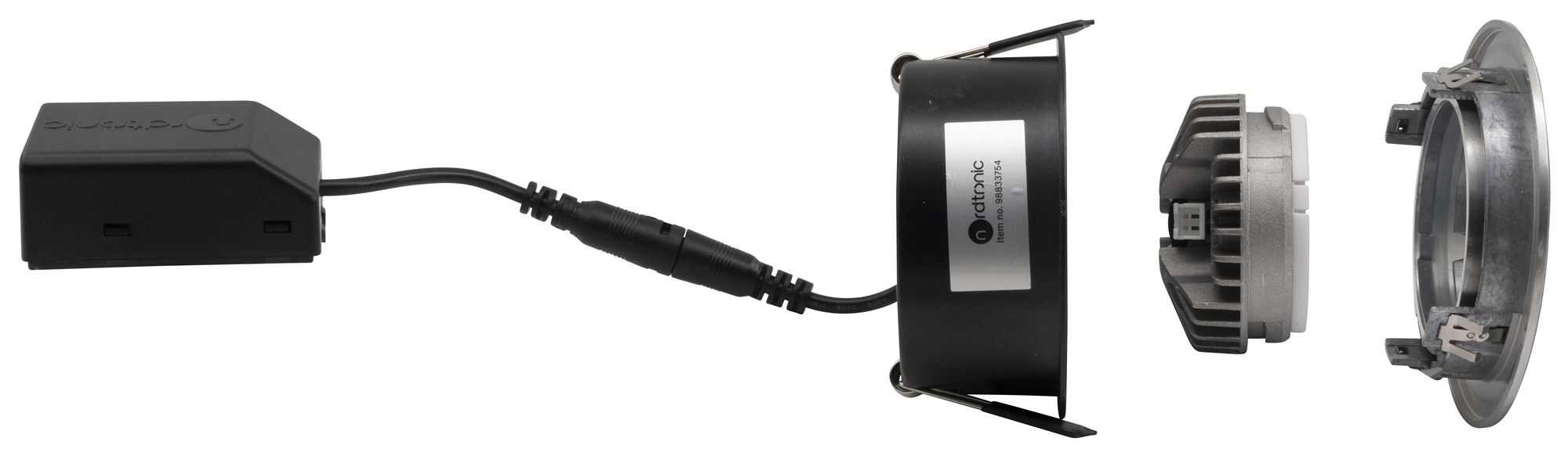 • The downlight can be driven either by a stand-alone driver or by Nordtronic's 25W driver (25W or up to 8 pcs. Ø55 mm downlight)