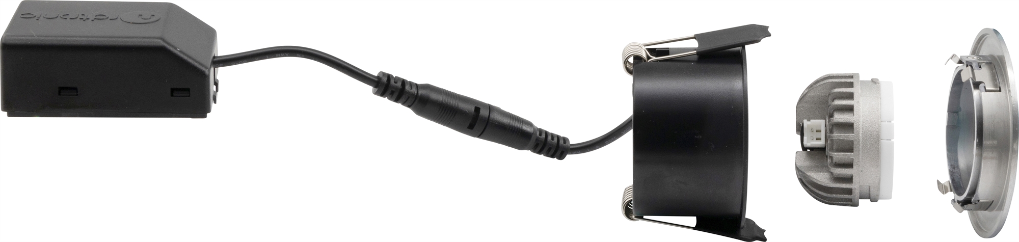 • The downlight can be driven either by a stand-alone driver or by Nordtronic's 25W driver (25W or up to 8 pcs. Ø55 mm downlight)